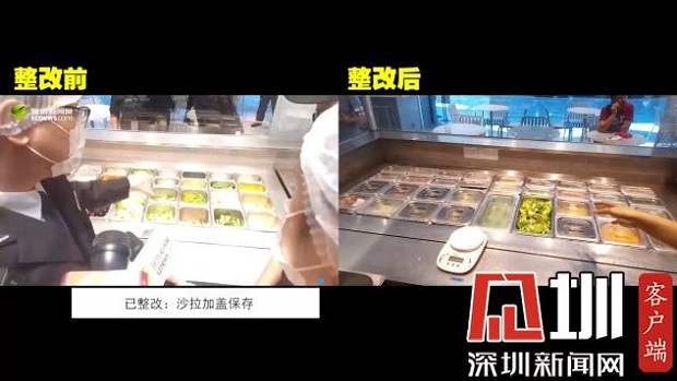 好色派沙拉在檢查后對沙拉都進行了加蓋保存。