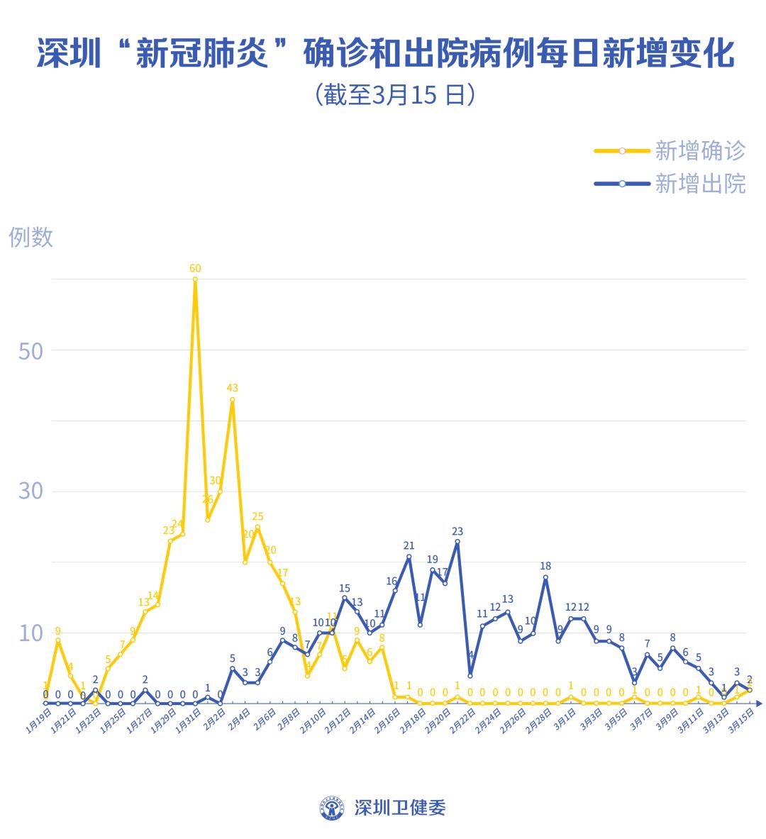 自2月22日以來(lái),深圳共新增6例新冠肺炎病例,全部為境外輸入。 其中3月14日、15日共新增3例。