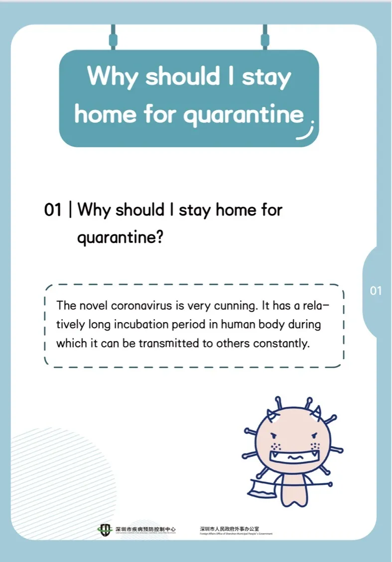 因此,為了您和家人健康,從疫情高發(fā)重點地區(qū)來深返深后,應(yīng)當進行14天居家隔離,以確認沒有感染病毒。在這非常時期,做好居家隔離既是對您自己和家人最好的保護,也是為疫情早日結(jié)束做貢獻。