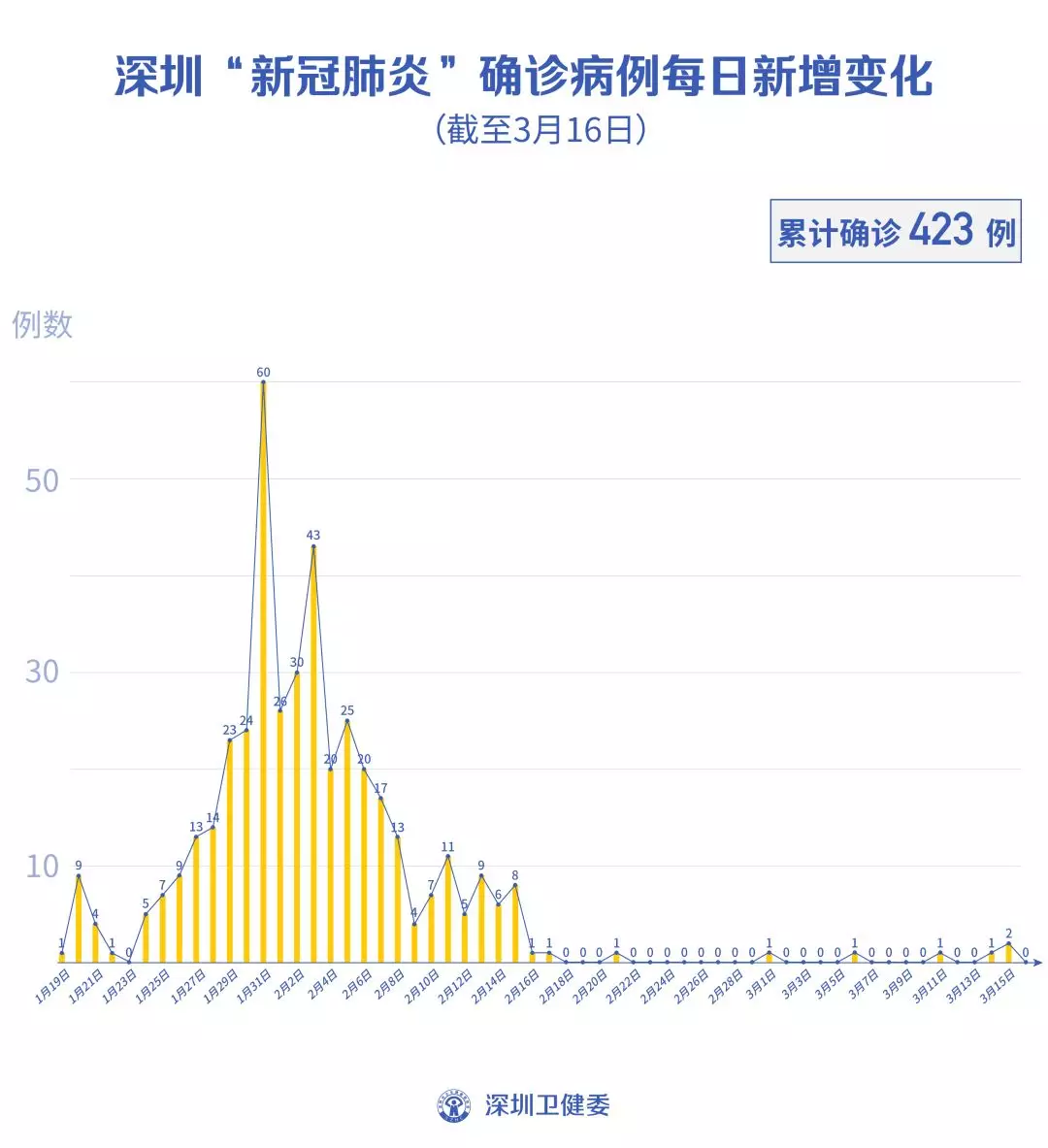 截至3月16日24時,深圳累計報告“新冠肺炎”病例423例。3月16日當(dāng)天無新增,出院1例。