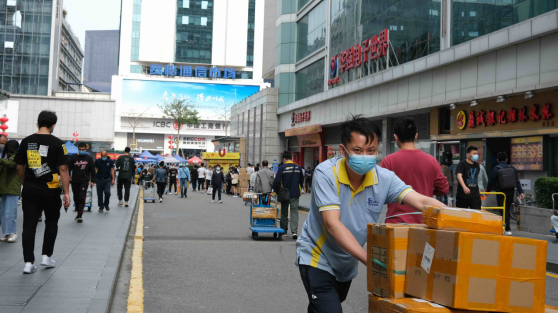 嚴(yán)禁外賣、快遞人員進(jìn)入市場經(jīng)營場所,設(shè)置快遞物品安放區(qū)域,實(shí)行非接觸式交接。