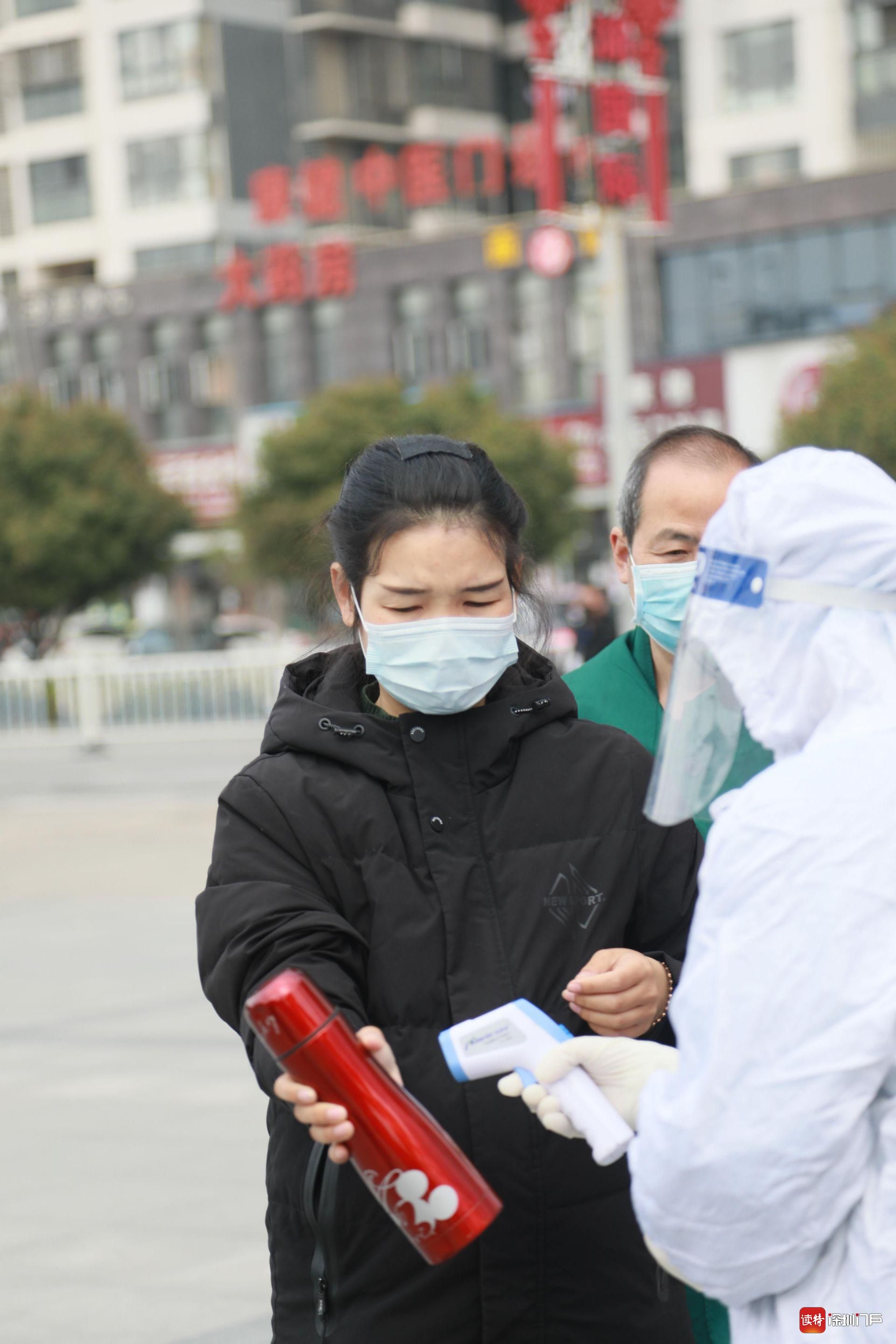 2月16日,監(jiān)利縣人民醫(yī)院,接受體溫檢測的當?shù)厝罕姟?/p>