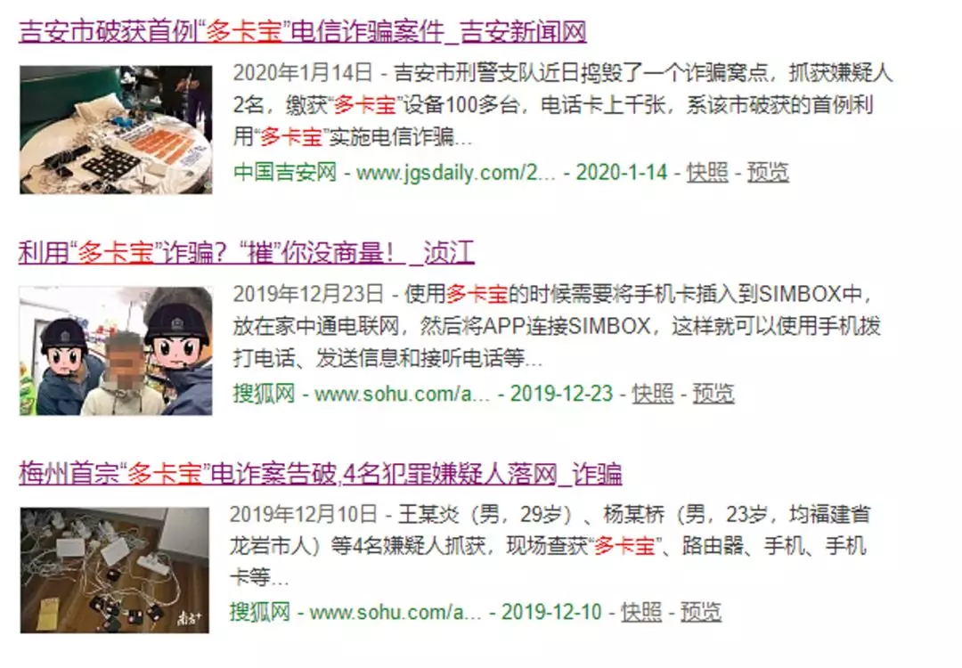 “多卡寶”產品的研發(fā)初衷是真的香,可投入市場的效果卻讓全國警方上頭——這簡直是為境外犯罪集團實施詐騙打造的完美解決方案!