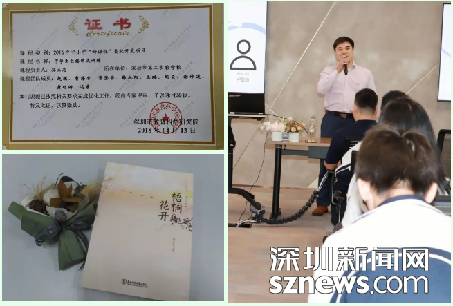 多年來,孫立志老師一直努力實踐“快樂語文”“和語文生活化,生活語文化”的大語文教學(xué)理念,提倡并身體力行在語文教學(xué)實踐中,創(chuàng)設(shè)生活化的情境,讓語文教學(xué)與社會實踐緊密結(jié)合,激發(fā)學(xué)生興趣,引導(dǎo)學(xué)生深入創(chuàng)新思考和個性表達,真正形成較強的語文能力,引導(dǎo)學(xué)生成長為有學(xué)養(yǎng)、有高度、有見地、有情懷的大寫的人。他認(rèn)為,由于語文學(xué)科的工具性和人文性兼具的特性,語文教學(xué)對老師的要求較高,語文老師除了要做淵博的閱讀者、深刻的思想者、勤奮的寫作者、敬業(yè)的教育者,還要努力做一個興愛好廣泛、生動有趣的學(xué)生心理上的“同齡人”,千方百計引導(dǎo)學(xué)生體驗閱讀與思考,創(chuàng)新與寫作的樂趣,從而激發(fā)學(xué)生的語文學(xué)習(xí)的內(nèi)驅(qū)力,真正達到“教是為了不教”的目的。為此,孫立志老師在勤奮教學(xué)并取得優(yōu)異成績的同時,努力讓語文教學(xué)真正在學(xué)生人生打下深深印記,奠基學(xué)生終生發(fā)展,他做了很多探索:開系列講座給學(xué)生講《春秋戰(zhàn)國——牛人的黃金時代》,開發(fā)全市繼續(xù)教育課給老師講《東周典型人物研究》,耕耘微信公號笑談歷史風(fēng)云,開發(fā)深圳市好課程《中學(xué)生創(chuàng)意作文訓(xùn)練》,帶領(lǐng)學(xué)生公開出版深圳第一部班級學(xué)生集體著作《梧桐花開》,指導(dǎo)大批學(xué)生在各級各類刊物發(fā)表文章,在各類語文比賽樂促教,以歌助學(xué),只不過是孫立志老師教學(xué)探索創(chuàng)新的一葉一花,相信師者每一點守責(zé)盡心的努力,都會助力學(xué)生人生之樹上結(jié)出香甜的果實。