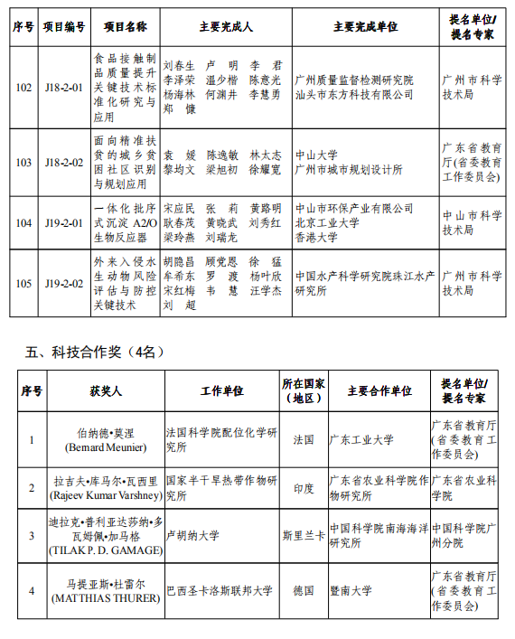 此外,授予伯納德·莫涅、拉吉夫·庫馬爾·瓦西里、迪拉克·普利亞達(dá)莎納·多瓦姆佩·加馬格、馬提亞斯·杜雷爾4名專家科技合作獎(jiǎng)。