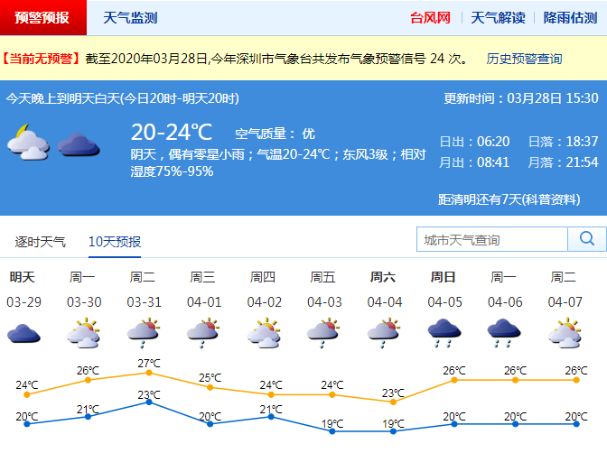 28日降雨結(jié)束 未來一周深圳云量較多,部分時(shí)間有雨