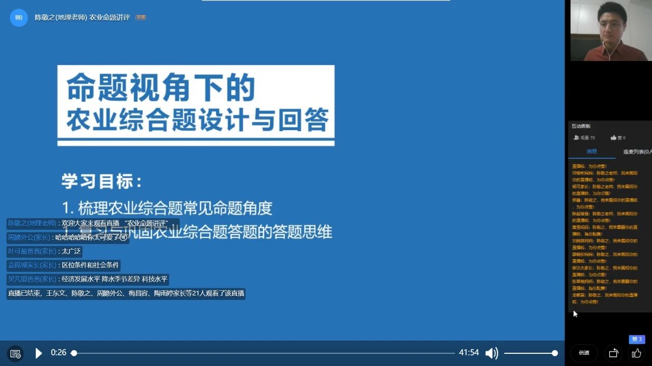 地理科李金鳳老師在《農(nóng)業(yè)區(qū)位因素及其變化》一課中組織了線上分組討論,并對小組討論的結(jié)果逐一點(diǎn)評,及時(shí)反饋。