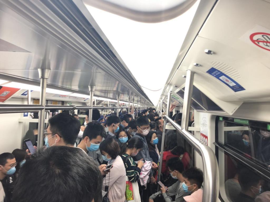 ▲地鐵4號線早高峰相對擁擠。