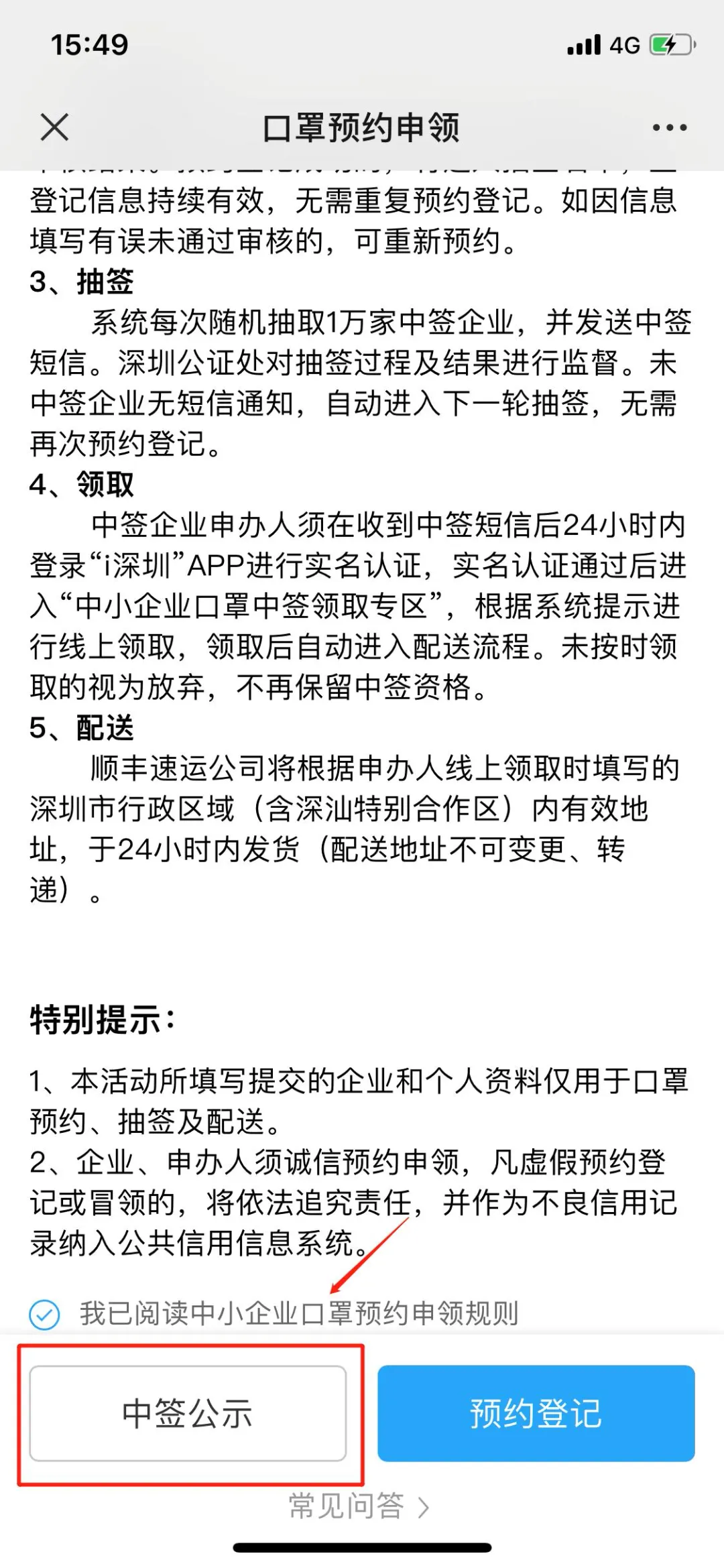 企業(yè)中簽名單:在“i深圳”微信公眾號首頁-口罩預約-中小企業(yè)專區(qū)頁面的下方“中簽公示”查看