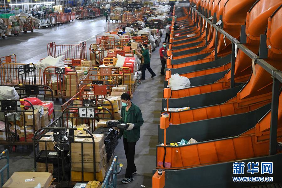 4月1日,在深圳郵件處理中心,工作人員在分揀郵件。據(jù)深圳市郵政管理局介紹,春節(jié)以來,深圳郵政快遞業(yè)累計(jì)向湖北運(yùn)送各類醫(yī)療、防疫物資超2萬(wàn)批次,累計(jì)為深圳市民配送防疫物資和生活必需品超過2.5億件,為防疫物資和群眾基本生活必需品送達(dá)提供了有力保障。新華社記者 梁旭 攝