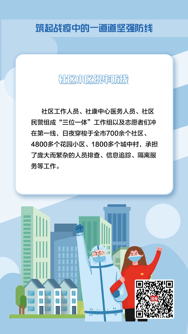 社區(qū)小區(qū)是“外防輸入、內(nèi)防擴散”的有效防線,在這個關鍵戰(zhàn)場上,由社區(qū)工作人員、社康中心醫(yī)務人員、社區(qū)民警組成的“三位一體”工作組以及志愿者們沖在第一線,日夜穿梭于全市700余個社區(qū)、4800多個花園小區(qū)、1800多個城中村,承擔了龐大而繁雜的人員排查、信息追蹤、隔離服務等工作。