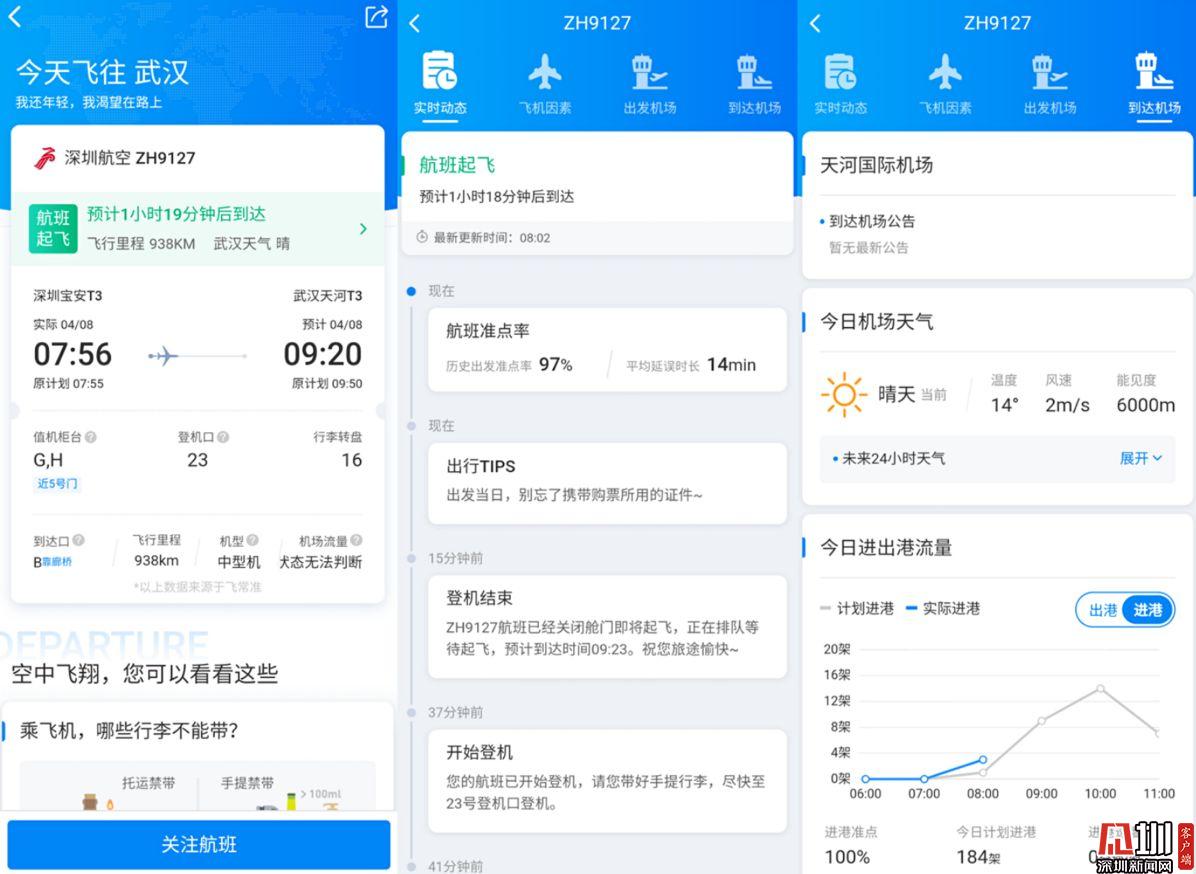 旅游app查詢到的當(dāng)日武漢飛深圳航班情況。
