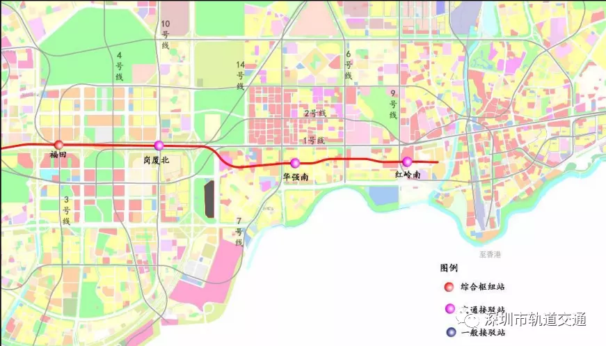 11號線二期自福田站至紅嶺南站,線路長度5.58公里,為地下線,采用A型車8輛編組;建設(shè)工期4年。