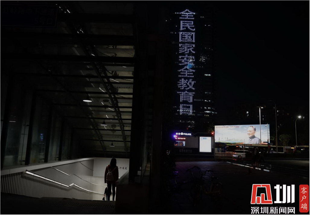 羅湖區(qū)新聞大廈亮出“全民國家安全教育日”字眼。