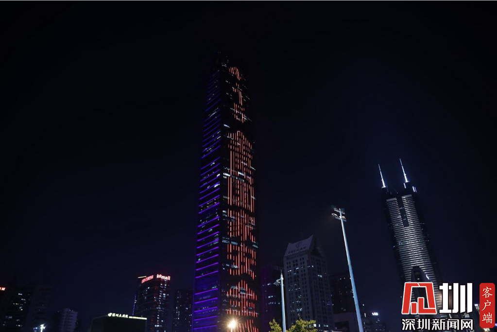 另一個(gè)角度的京基100,建筑外體亮出“41全國國家安全教育日”字眼。