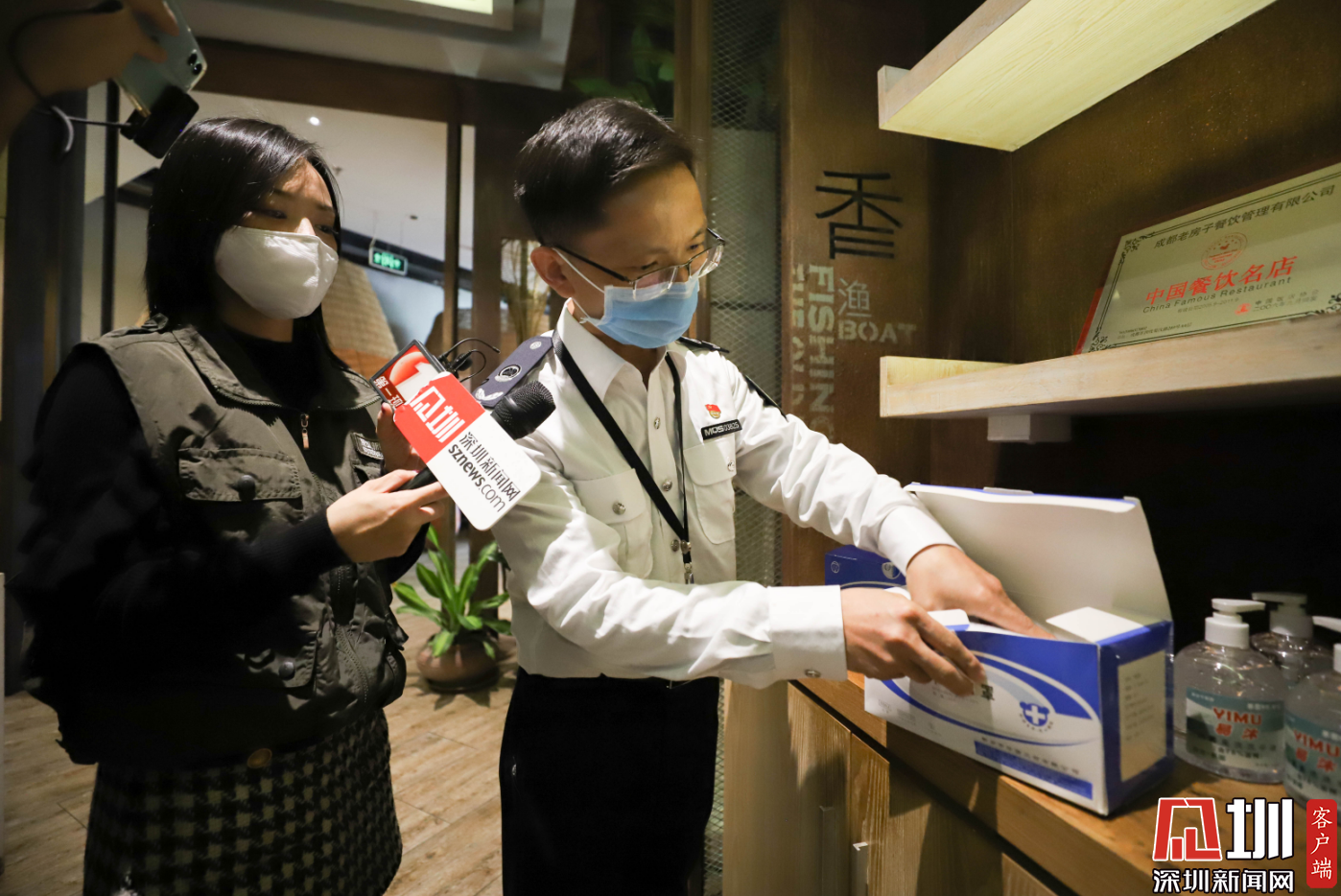 本次行動主要檢查餐飲單位復工復產、防疫防控以及日常食品安全管理措施是否落實到位,南山區(qū)人大代表和食品安全志愿者全程參與監(jiān)督執(zhí)法行動。當天,執(zhí)法人員分別就餐廳防疫物資準備、后廚衛(wèi)生情況、顧客分區(qū)就座等情況,查看兩家餐廳是否落實到位。并由專業(yè)檢測人員正在對餐廳的食材進行快速檢測。