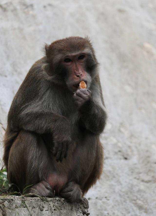 ▲猴子正吃著市民投放的食物。