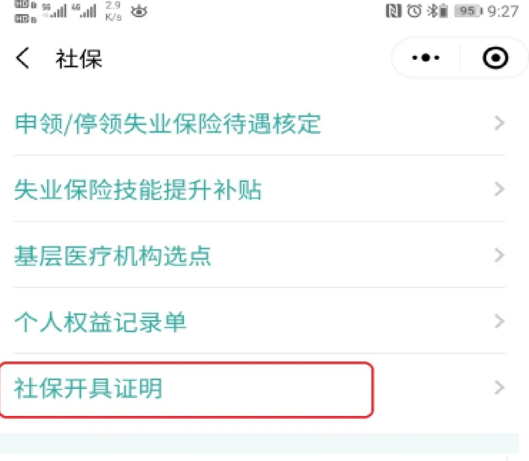 4、選擇“社會(huì)保險(xiǎn)參保證明”。