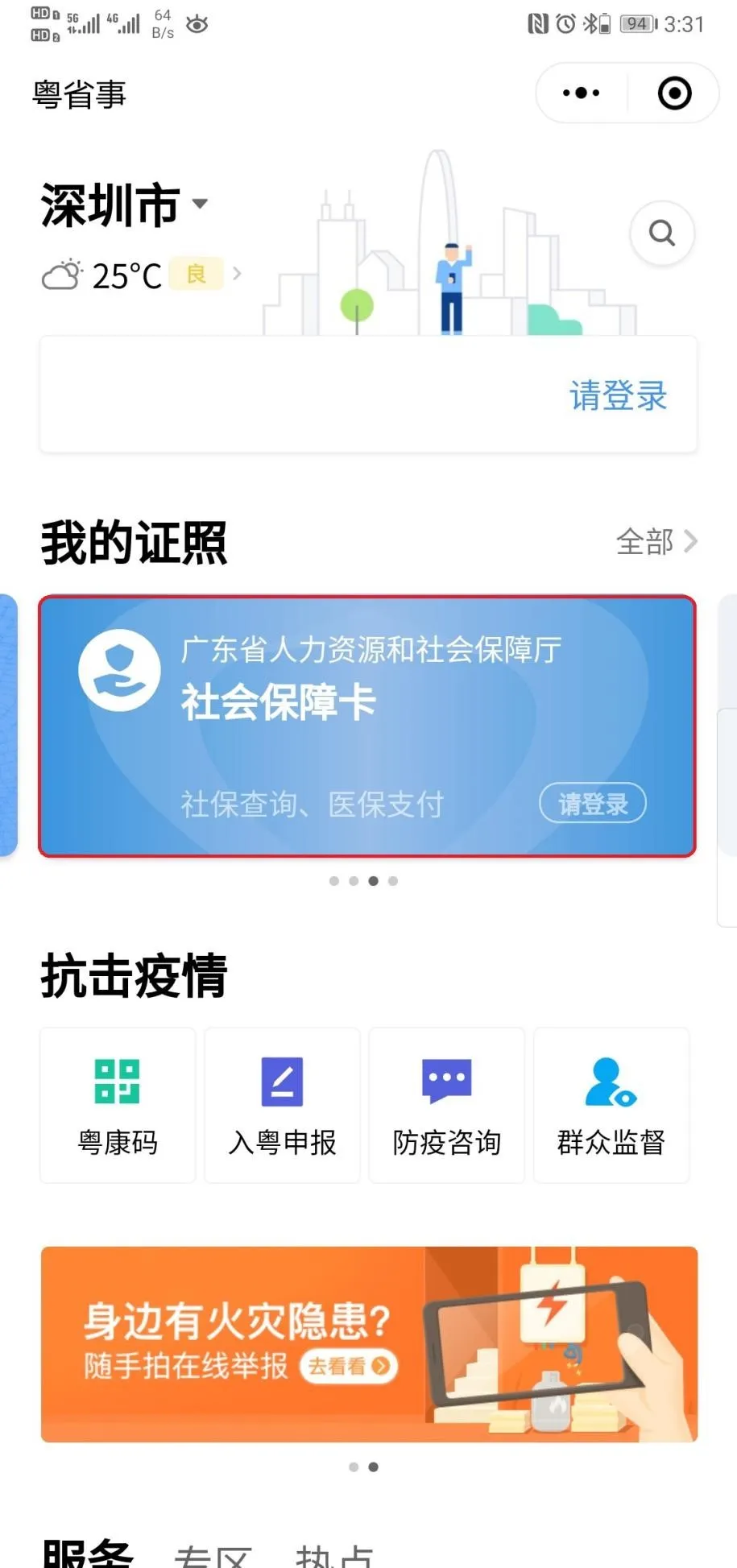 1、通過“粵省事”微信小程序查詢,微信搜索“粵省事”小程序,登錄后,在“我的證照”添加“社會(huì)保障卡”;