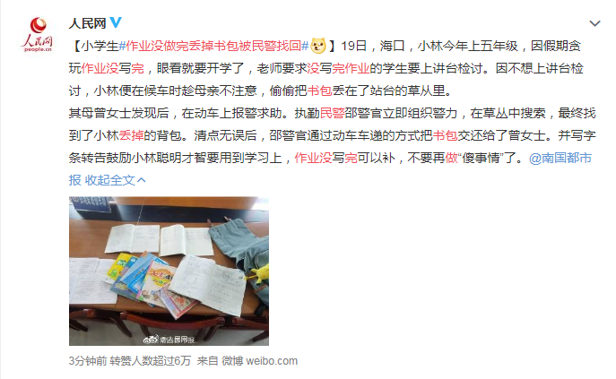 為了逃避開(kāi)學(xué)被老師懲罰,??谝恍W(xué)生直接把書包扔了。