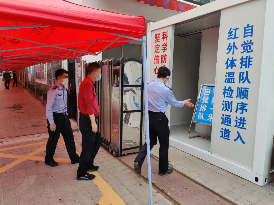 “學(xué)校大門是校園疫情防控的第一道防線,把好校園第一道關(guān)卡至關(guān)重要,采取全封閉管理,對(duì)外來人員嚴(yán)格詢問登記,逢車必檢、逢人必查,在上學(xué)放學(xué)高峰時(shí)段確保校門口安保力量,將風(fēng)險(xiǎn)隱患攔截在校門外?!?月21日,在福田區(qū)云頂學(xué)校排查安全隱患時(shí),福強(qiáng)派出所社區(qū)民警程印對(duì)該校安全負(fù)責(zé)人特別強(qiáng)調(diào)。據(jù)了解,截至4月25日,福田公安分局對(duì)轄區(qū)44所中學(xué)開展了檢查,發(fā)現(xiàn)并整改問題隱患17處。