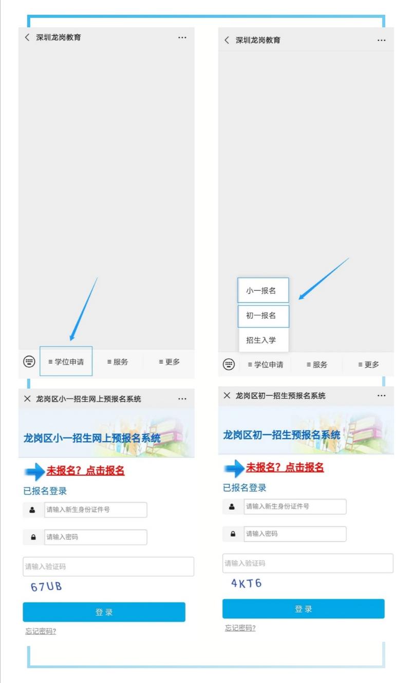 和以往一樣,家長(zhǎng)可以登錄龍崗政府在線網(wǎng)站的“龍崗區(qū)教育局基礎(chǔ)教育科”頁(yè)面(http://www.lg.gov.cn/bmzz/zs/)進(jìn)行學(xué)位申請(qǐng)報(bào)名,不過今年,家長(zhǎng)多了一個(gè)更加便捷的報(bào)名方式,通過關(guān)注“深圳龍崗教育” 微信公眾號(hào),在“學(xué)位申請(qǐng)”欄目中點(diǎn)擊“小初一報(bào)名”,憑適齡兒童、少年身份證號(hào)進(jìn)入,填寫學(xué)位申請(qǐng)信息,填報(bào)學(xué)校志愿。確認(rèn)信息無誤后直接保存,同時(shí)產(chǎn)生申請(qǐng)學(xué)位的流水號(hào),即完成網(wǎng)上預(yù)報(bào)名。