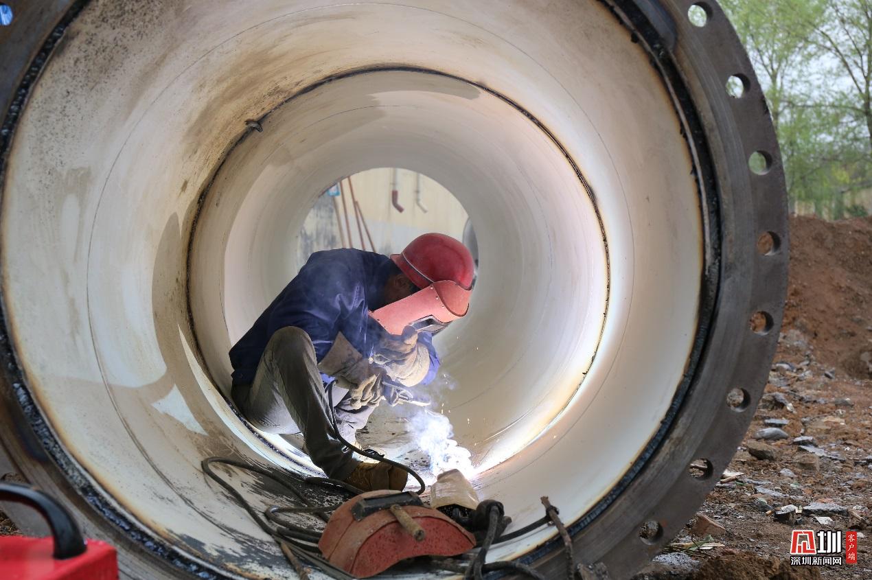 焦作水務(wù)公司電焊工申強(qiáng),正對府城水廠配套新城加壓站 DN1200管道進(jìn)行工藝焊接。