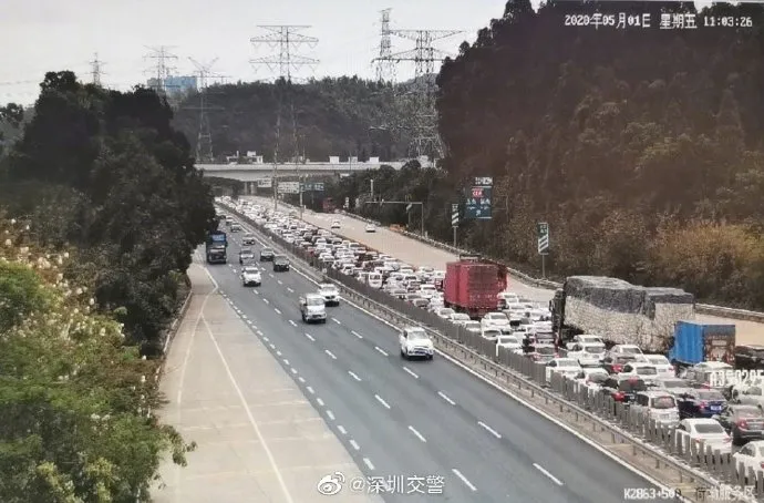 5月1日上午8時(shí)起,沈海高速荷坳段東行、深鹽二通道東行均出現(xiàn)車(chē)多緩行,并持續(xù)近10個(gè)小時(shí)的車(chē)多狀態(tài),絕大多數(shù)為出深車(chē)輛。