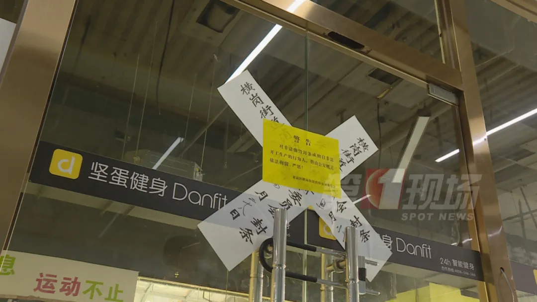 記者來到事發(fā)的新世界廣場(chǎng)三樓,發(fā)現(xiàn)通往天臺(tái)的大門已經(jīng)上鎖,而樓梯過道則是堆滿了裝修器材,裝修工人墜落的健身房區(qū)域已被貼上封條。