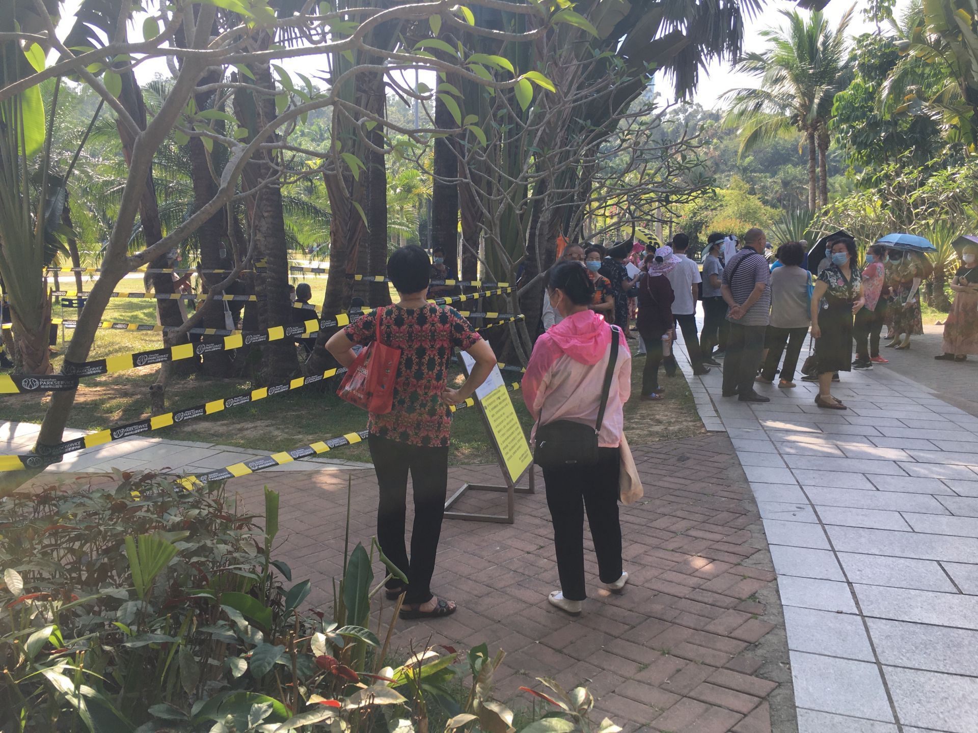 5月3日15時(shí)許,記者再次來(lái)到蓮花山公園相親角,公園管理處的工作人員正在加設(shè)警戒線,并用喇叭勸說(shuō)家長(zhǎng)們等疫情過(guò)后再來(lái)相親?!熬渚€經(jīng)常被拉斷,家長(zhǎng)就會(huì)把自己做的征婚的牌子往相親角上掛,外圍的人看到了又走到里面去看,去扎堆?!惫珗@管理處職工賀晉元表示很無(wú)奈,他們每天要到此處勸離四五次,警戒線隔兩天也要拉一次,但效果不太好。據(jù)了解,有部分家長(zhǎng)拿著征婚廣告牌和凳子,等工作人員離開后又重新聚集起來(lái),可以坐一個(gè)下午。