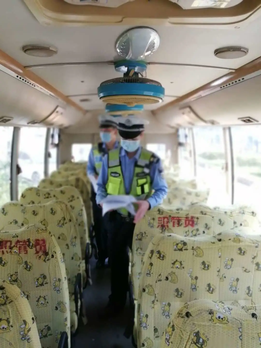 查“四證”(校車許可、駕駛證、交強險、行駛證),重點檢查校車是否為允許使用的2類校車,檢查校車駕駛?cè)耸欠窬邆湫\囻{駛資格;
