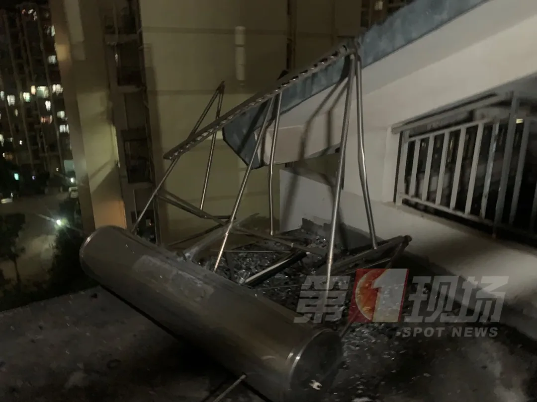 ▲掉落的太陽能熱水器儲水箱