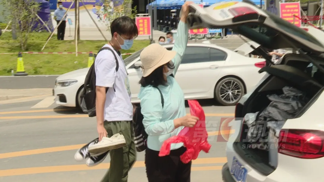 深圳技術(shù)大學位于坪山區(qū),離市區(qū)較遠,本地生多是乘坐私家車前來。讀大二的冼晨浩是一名本地生,家住寶安,今天上午,他的媽媽開車把他送到學校。這大包小包的,兩人從車上拿下來不少行李。