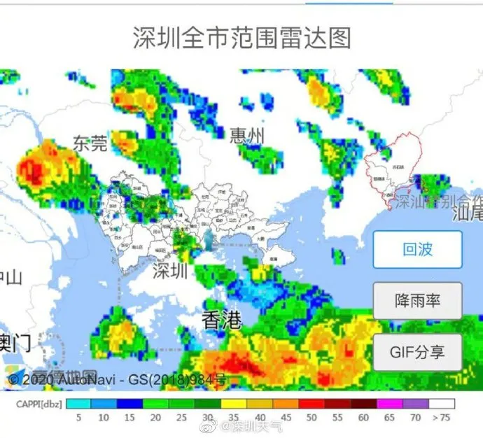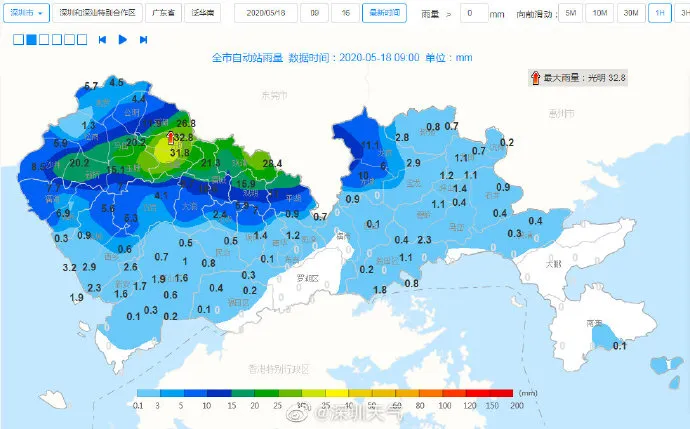 【深圳市分區(qū)暴雨黃色預(yù)警】預(yù)計(jì)福田區(qū),羅湖區(qū),南山區(qū),鹽田區(qū),大鵬新區(qū),西部海區(qū),東部海區(qū),寶安區(qū)(新安、西鄉(xiāng)、航城街道),龍崗區(qū)(南灣、坂田、園山、橫崗、布吉、吉華街道),龍華區(qū)(民治街道)和坪山區(qū)(馬巒、碧嶺街道)1-2小時(shí)內(nèi)將出現(xiàn)20-40毫米降水,深圳市氣象臺于2020年05月18日15時(shí)50分在上述地區(qū)發(fā)布暴雨黃色分區(qū)預(yù)警,全市進(jìn)入暴雨戒備狀態(tài),請注意防范。