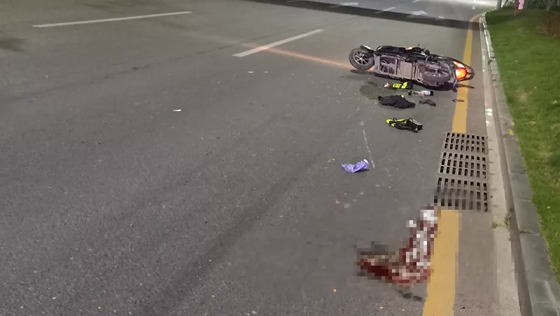 該男子上半身裸露橫躺在人行道上,而且臉上、身上多處擦傷,右眼淤青紅腫,旁邊還有一輛損壞的兩輪電動(dòng)車(chē),坐墊、鎖鏈、頭盔散落一地。