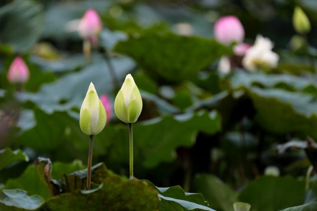 ▲公園內(nèi)主要荷花品種有粉色的"紅建蓮"和白色的"一丈青","紅建蓮"已大量盛開。