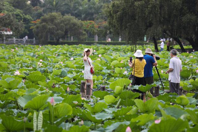 ▲滿塘荷花為城市增加了一抹碧綠色。