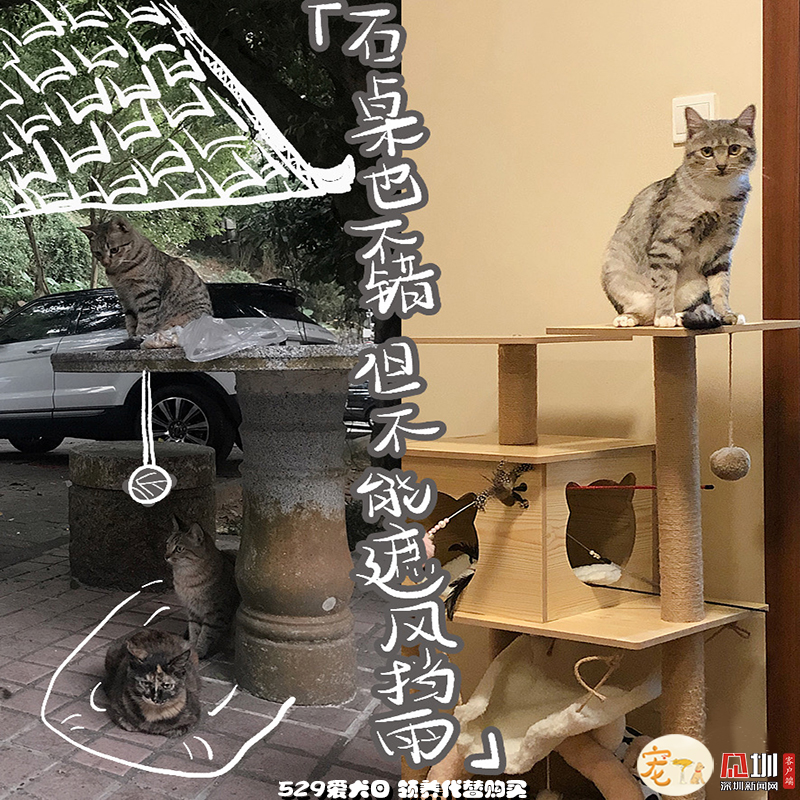 外面的世界再精彩,也比不過一個能遮風擋雨,沒有車流、毒藥威脅,三餐穩(wěn)定、四季如春的容身之處,更何況,這里還有比石桌更有趣的貓爬架和比落葉更好玩的小玩具?,F(xiàn)在“高高在上”“作威作?!钡呢堖?,也是花光了一生所有運氣,才能在無法獨自生存的小時候,遇見一個愿意照顧TA一生的“兩腳獸”。