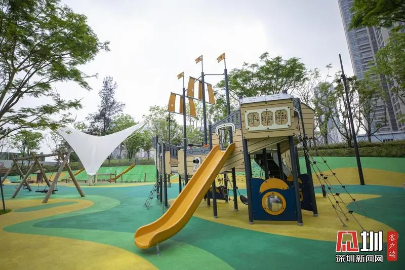 林下棧道兒童活動(dòng)區(qū),有趣味滑板、游戲沙池、以及盤(pán)旋而上的空中棧道,蟲(chóng)鳴魚(yú)躍,鳥(niǎo)語(yǔ)花香,是親子互動(dòng)的浪漫花園。