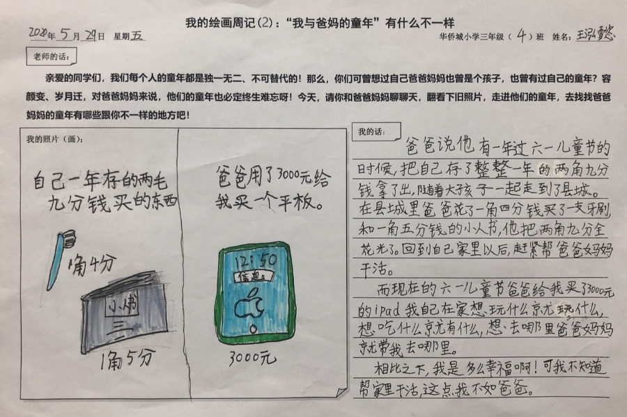 ▲媽媽說:“那會兒只有過六一兒童節(jié),才可以吃到大白兔奶糖。甜蜜蜜的味道,渴望了許久,吃了糖,糖紙都舍不得扔,還悄悄珍藏起來?!眿寢屵€說:“那時(shí),沒有漂亮的公主裙,只有純白的棉布裙,但還是特別的開心!”雖然我和媽媽在六一得到的禮物不同,但過節(jié)的心情都是激動(dòng)又難忘!
