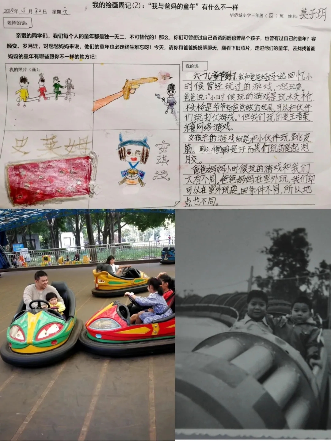 ▲爸爸說,小時(shí)候好多玩具都是自己動(dòng)手做的,拍紙牌,彈彈珠……給他們帶來了很多快樂。
