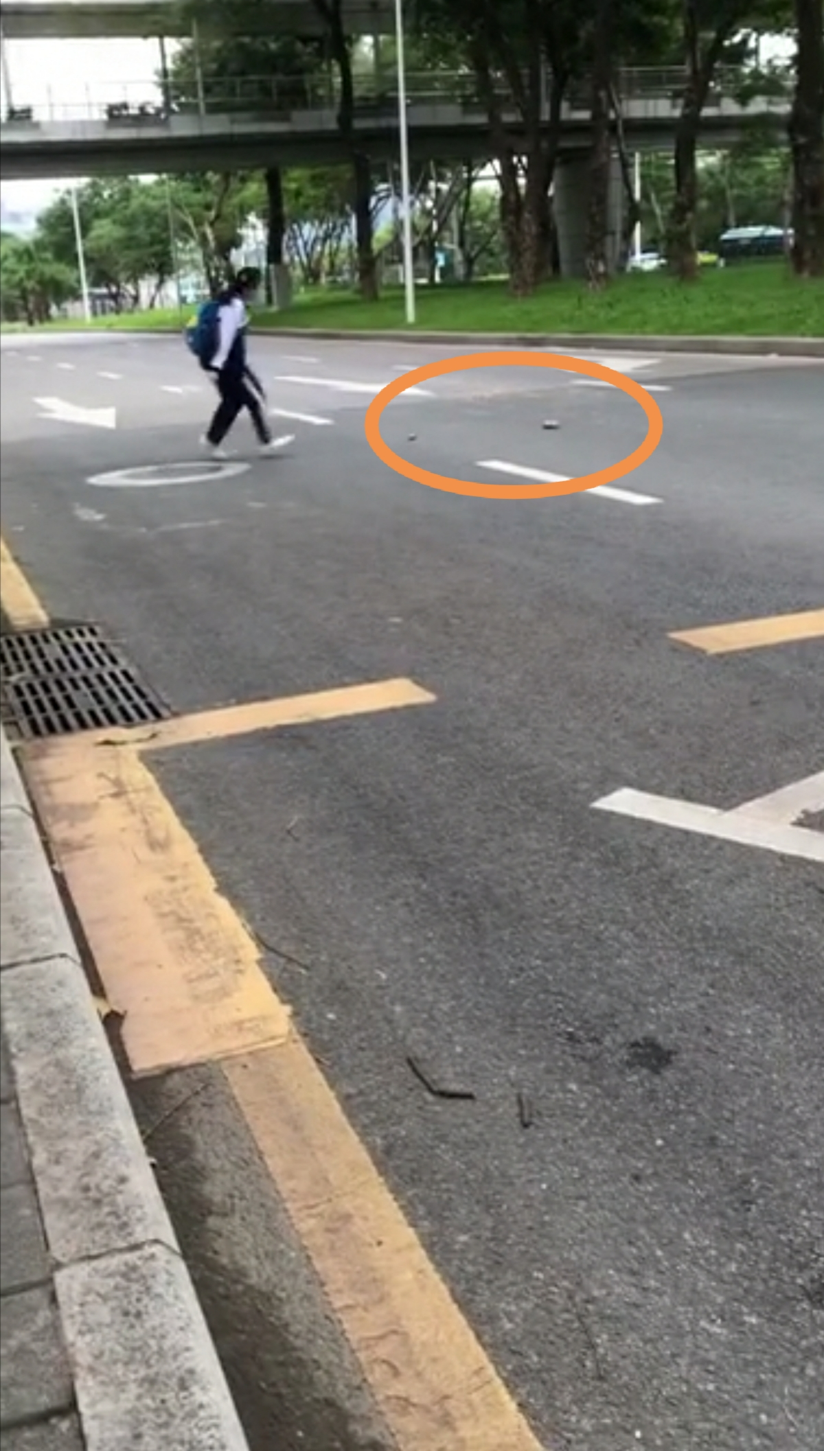 原標題:泥頭車在車道內(nèi)掉落石塊深圳學生跑去撿走深圳交警:感動但危險