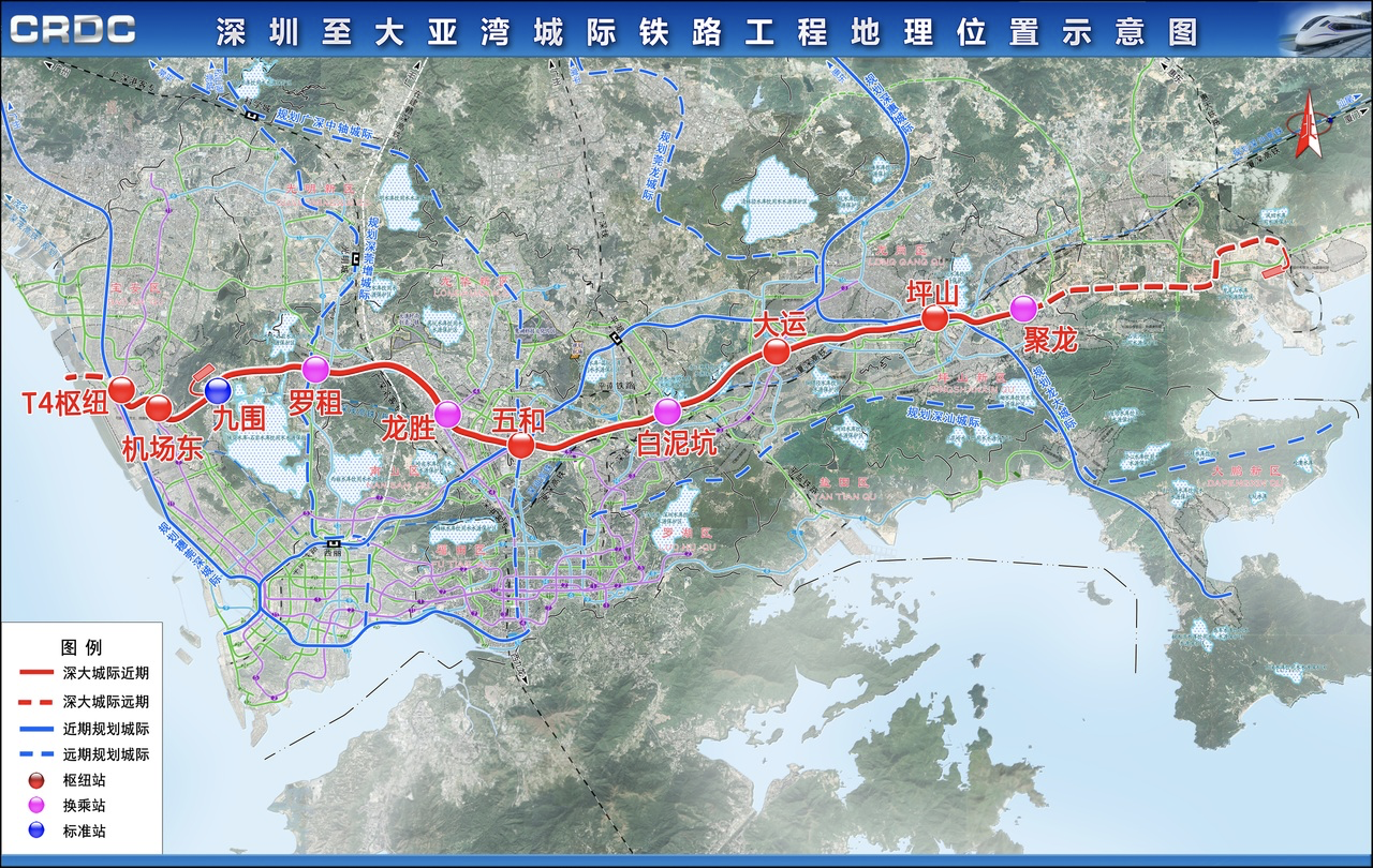 深圳市城市交通規(guī)劃設計研究中心受中國鐵路設計集團有限公司委托,開展深圳至大亞灣城際(以下簡稱“深大城際”)鐵路工程可行性研究社會穩(wěn)定分析專題研究。根據(jù)其發(fā)布的公示信息,深大城際鐵路規(guī)劃自寶安機場T4站至惠州大亞灣經(jīng)濟技術(shù)開發(fā)區(qū),途經(jīng)寶安區(qū)、龍華區(qū)、龍崗區(qū)、坪山區(qū)、惠州市大亞灣地區(qū),其中深圳段為近期實施工程,惠州段為遠期預留工程。