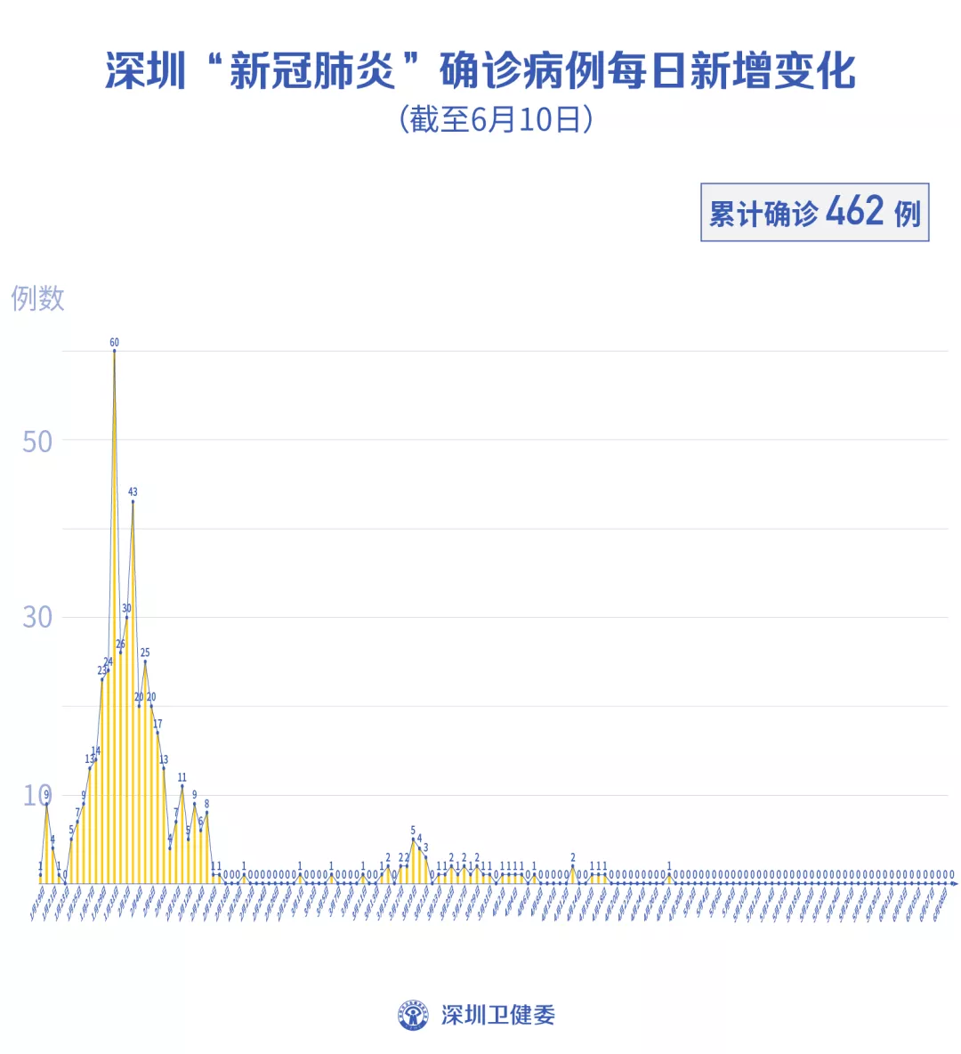 截至6月10日24時,深圳累計報告新冠肺炎病例462例。