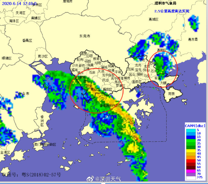 深圳市氣象臺(tái)于2020年06月13日14時(shí)45分在全市發(fā)布雷電預(yù)警,預(yù)計(jì)2小時(shí)內(nèi)全市將受雷電影響,市民停留在安全地方;按照防御預(yù)案停止戶外易燃易爆危險(xiǎn)作業(yè),并加強(qiáng)危化場(chǎng)所安全管理。