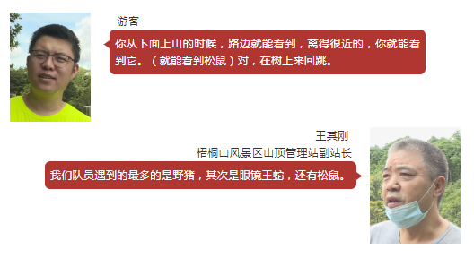 深圳一直嚴格控制對梧桐山的人類活動和開發(fā)力度,為野生動物棲息繁衍提供了很好的條件,近年來,山里的野生動物種群數(shù)量逐漸增加,游客都偶爾能發(fā)現(xiàn)它們的身影,巡山員巡山的時候,更時常一路相伴。