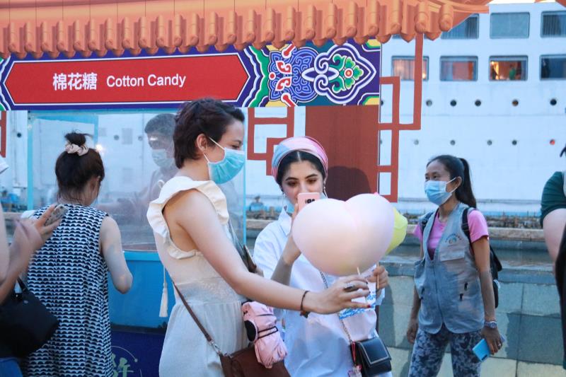 糖畫、捏面人、穿漢服……當(dāng)晚的海上世界廣場(chǎng)熱鬧祥和,約300人次中外居民歡聚一起,互致美好祝福,在感受中國(guó)傳統(tǒng)文化當(dāng)中共度端午佳節(jié)。