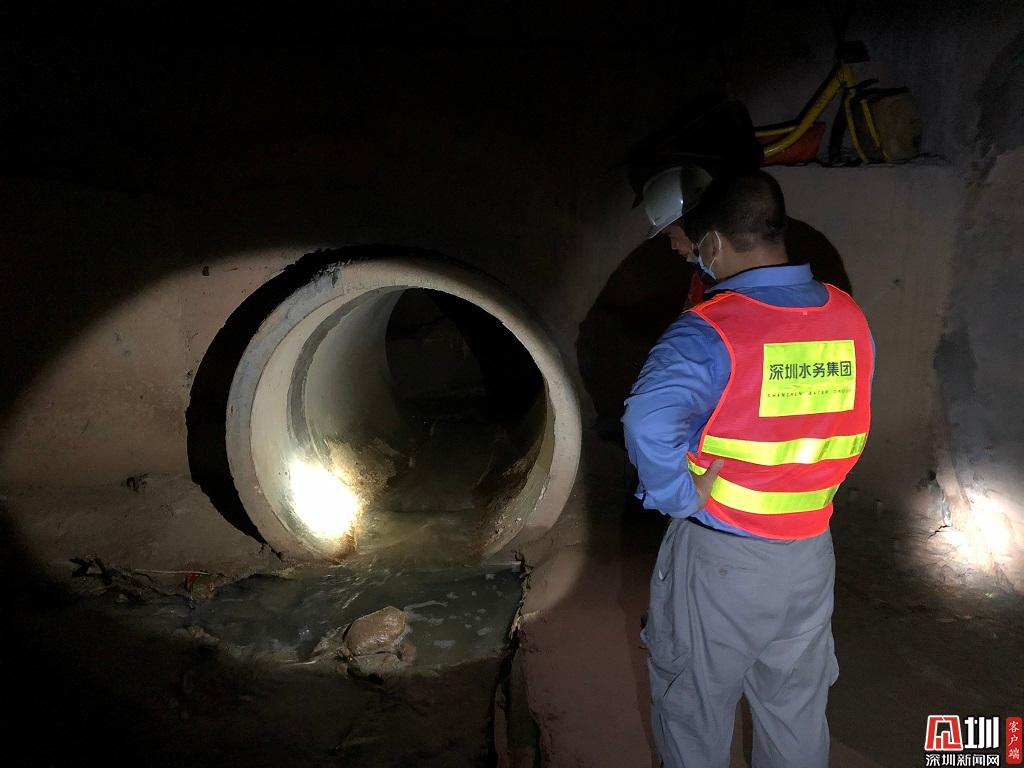 工作人員對地下暗涵進行檢查。