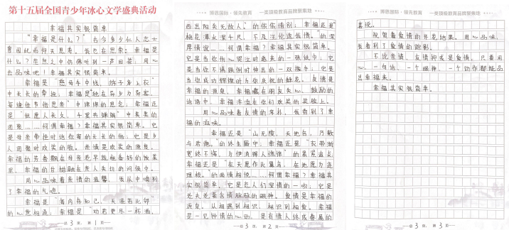據(jù)活動(dòng)組委會(huì)相關(guān)負(fù)責(zé)人介紹,“第十五屆全國(guó)青少年冰心文學(xué)盛典”以“2020文學(xué)之路,向上的力量”為主題,全程公益免費(fèi),設(shè)置了小學(xué)低年級(jí)組(1-3年級(jí) )、小學(xué)高年級(jí)組(4-6年級(jí) )、初中組、高中組、大學(xué)組、教師組、文學(xué)愛好者組等多個(gè)組別。值得注意的是,所有報(bào)名選手必須使用本次活動(dòng)專用稿紙進(jìn)行書寫創(chuàng)作。組委會(huì)將會(huì)根據(jù)選手報(bào)名提交的郵寄地址免費(fèi)郵寄活動(dòng)專用稿紙,每人僅限領(lǐng)取5張。選手完成手寫作品以后,將作品掃描或拍照發(fā)送到全國(guó)青少年冰心文學(xué)寫作指導(dǎo)中心深圳組委會(huì)指定郵箱szbxwx@126.com(冰心文學(xué)深圳)或gdbxwx@126.com(冰心文學(xué)廣東)。