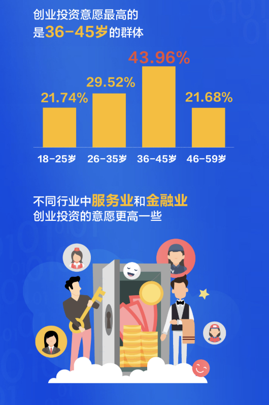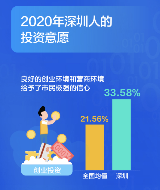 有了錢,深圳人會投資什么?大調查發(fā)現(xiàn),深圳人在創(chuàng)業(yè)投資的選擇占比高達33.58%,比全國平均水平要高出12個百分點,良好的創(chuàng)業(yè)環(huán)境和營商環(huán)境給予了市民極強的信心。從不同年齡段來看,創(chuàng)業(yè)投資意愿最高的是36-45歲的群體,不同行業(yè)中,服務業(yè)和金融業(yè)創(chuàng)業(yè)投資的意愿更高一些。